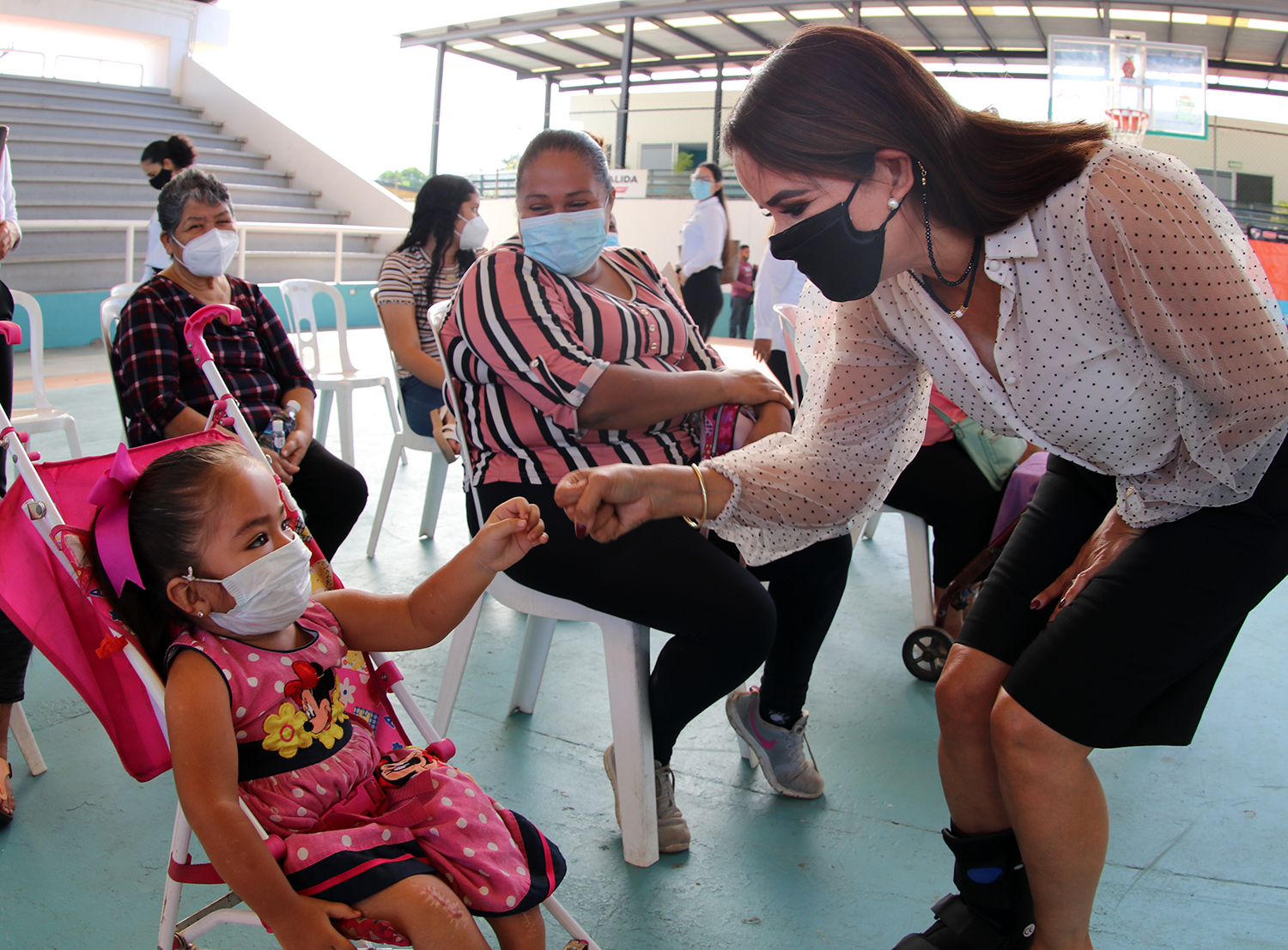 La presidenta de Sistema DIF Mazatlán, Gabriela Peña Chico, encabezó una nueva entrega en la Cancha German Evers donde se dieron cita niñas, niños y adultos con discapacidad para ser beneficiados con sillas de ruedas, lentes graduados, muletas, bastones, entre otros.