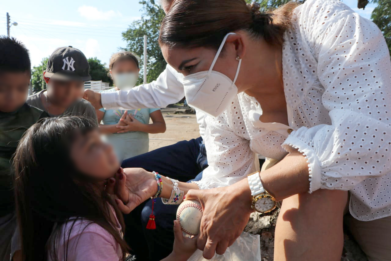 Además se entregaron aparatos funcionales, kits de higiene personal y pelotas de béisbol para fomentar el deporte en la niñez de la comunidad, también se entregaron 100 despensas que fueron donadas por el Club de Leones en apoyo a las familias más vulnerables.