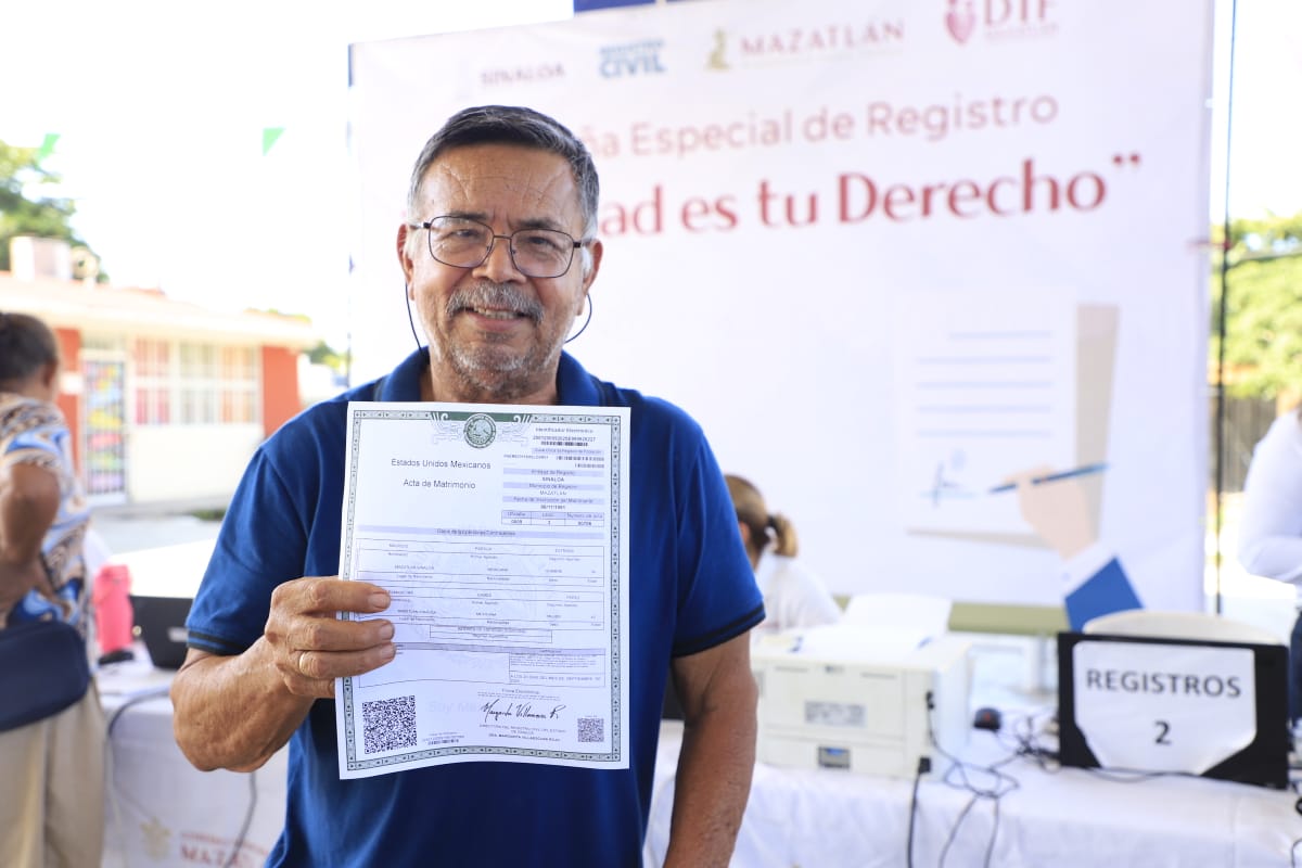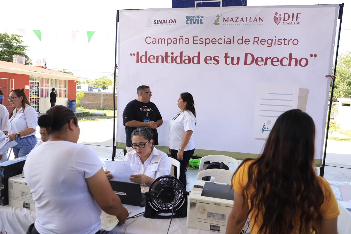 Mazatlán, Sinaloa, 20 de septiembre de 2025.- Este sábado se llevó a cabo en Mazatlán la Campaña Gratuita “Identidad es tu Derecho”, organizada por el Registro Civil de Sinaloa, con el apoyo del Sistema DIF Mazatlán y el Gobierno Municipal, que dirige la Presidenta Estrella Palacios Domínguez, teniendo como sede la Escuela Primaria Bicentenario de la Independencia, en el fraccionamiento Pradera Dorada 1.